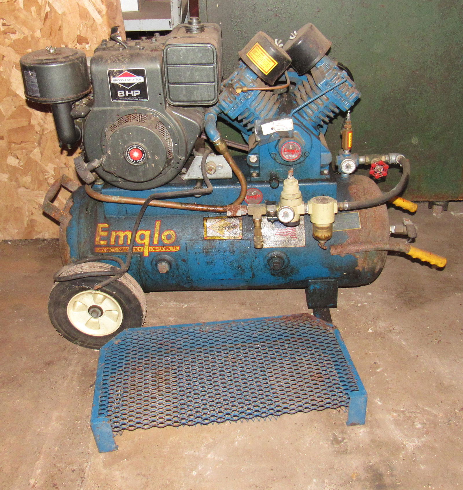 Emglo Air Compressor - Emglo Gas Engine Air Compressor, I have an older emglo am78 1.5hp twin stack compressor.. 04/15/19 3:45 pm et auction condition unknown now, does turn over with jump, tires do not hold air. The oil is a little gritty so i want to change it as well. You can really carry this anywhere to any job. We show our customers a few possible locations of the model number plate and how to. Lately it is having a hard time building up pressure and holding it.