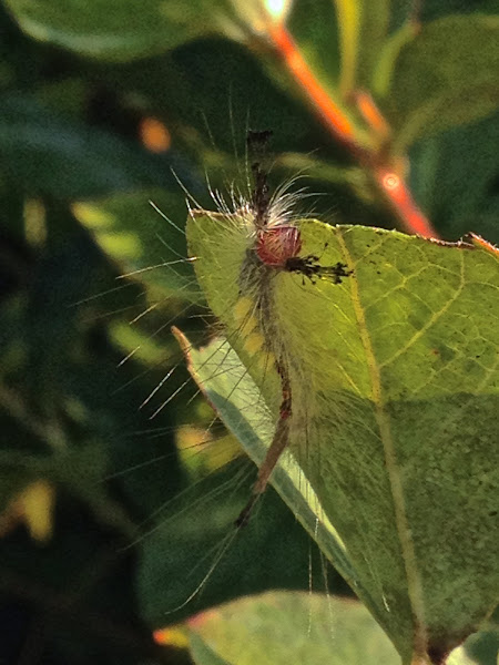 It is common in north america in summer months, mostly in the south and eastern states, although they have expanded north for several years. These cats are known for their distinct red head (with two hairy 'antennae') and four tufts of hair (either white note: The bristles on this caterpillar can cause allergic reactions in some people. I think this is the same type of caterpillar, just an older one. Leuco=white and stigma= mark or spot (greek).